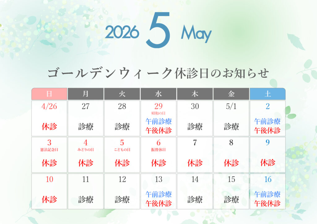 5月3日(日)〜10日(日)はお休みさせて頂きます。